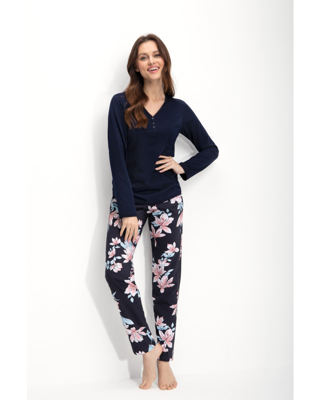 ● komplet dopełniają długie spodnie o prostych nogawkach