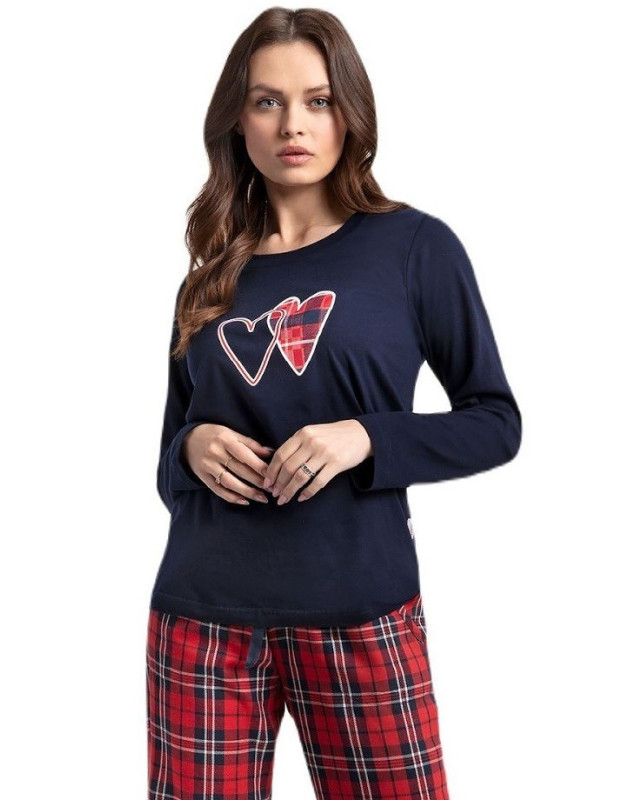 ● składa się z bluzki z nadrukiem serc i flanelowych spodni w kratę