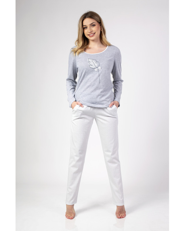● półokrągły dekolt ozdobiony kontrastującą lamówką