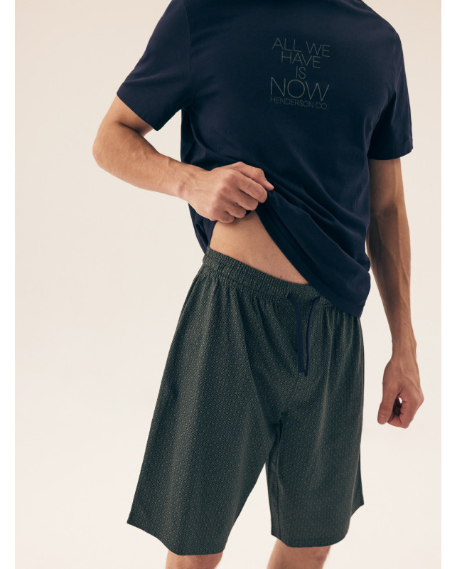 Piżama Męska Dreamer 42632 ● wykonana w 100% z naturalnej bawełny ● z krótkim rękawem i krótkimi spodenkami ● koszulka jednolita z okrągłym dekoltem ● z ozdobnym napisem z przodu ● dopełnienie kompletu stanowią spodenki z drobnym geometrycznym wzorem ● w pasie wygodna guma obszyta dzianiną i troczek do regulacji ● materiał jest przyjemny w dotyku i delikatny dla skóry ● uniwersalny model, który pasuje na każdą sylwetkę